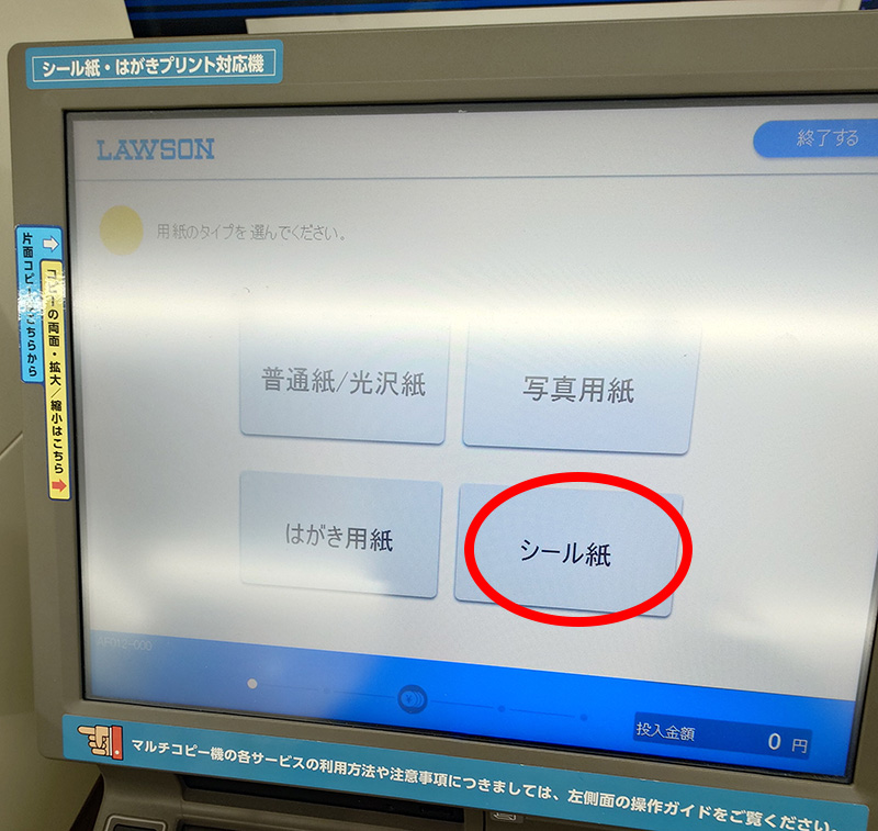 • ファミマ/ローソン/ミニストップの店で、コピー機メニューに「シール」「シール紙」がある