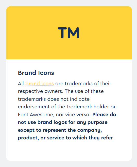 Font Awesomeのライセンスはあくまで「ソフトとしての機能(色変えや変形)」を提供しているだけで、「そのロゴの色を変えて表示する権利(商標権の許可)」までは保証していません。