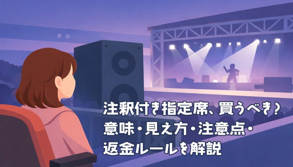 注釈付き指定席とは? 注釈付き指定席は、「一部が見えにくい/見えない可能性があります」と注釈つきで販売される指定席です。ちょっとドキドキする席種ですが、「見えにくい前提」で行くと、意外と満足できたという声があるのも事実(もちろん公演・席に... -